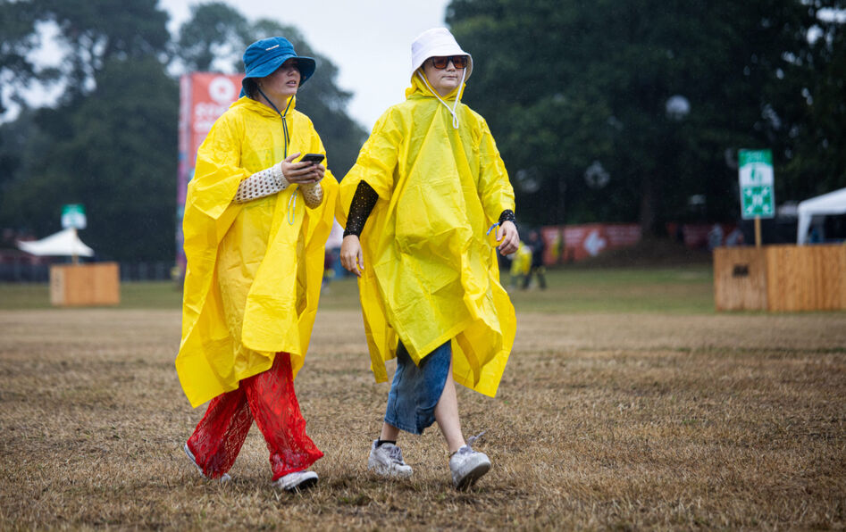 Sous la pluie lors du deuxième jour du festival de musique des Vieilles Charrues, le 14 juillet 2023, dans le Finistère (29). © Guillaume Saligot/Ouest France/Maxppp