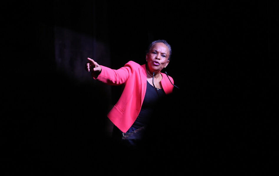 Christiane Taubira en meeting à la Faïencerie (Bordeaux), le 27 janvier 2022. © Romain Perrocheau/AFP