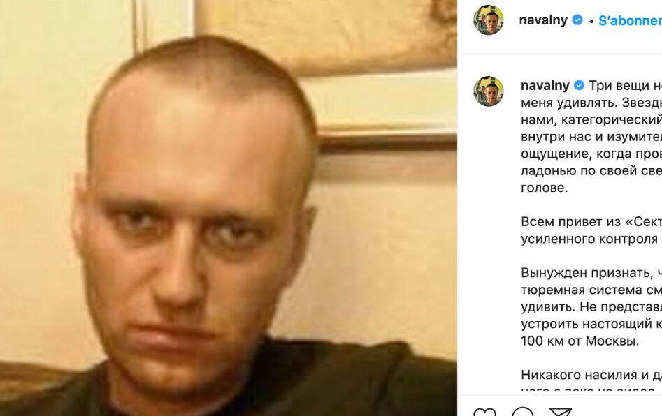 C’est en parodiant Emmanuel Kant qu’Alexeï Navalny publie son premier post Instagram depuis qu’il se trouve dans la colonie pénitentiaire de Pokrov, près de Vladimir, à une centaine de kilomètres de Moscou. Il s’y trouve depuis fin février, et doit y purger une peine de deux ans et demi de prison.