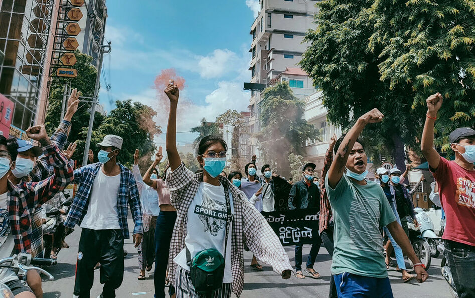 Une manifestation contre le putsch militaire à Mandalay (Birmanie), le 24 juin 2021. Photo anonyme circulant sur Facebook. © Handout/Facebook/AFP