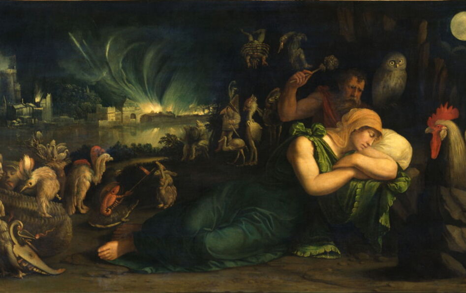 Battista Dossi, Allégorie de la Nuit, vers 1543-1544. Huile sur toile, 82 x 149,5 cm. Dresde, Staatliche Kunstsammlungen, Gemäldegalerie. © BPK, Berlin, Dist. RMN-Grand Palais / Elke Estel / Hans-Peter Kluth