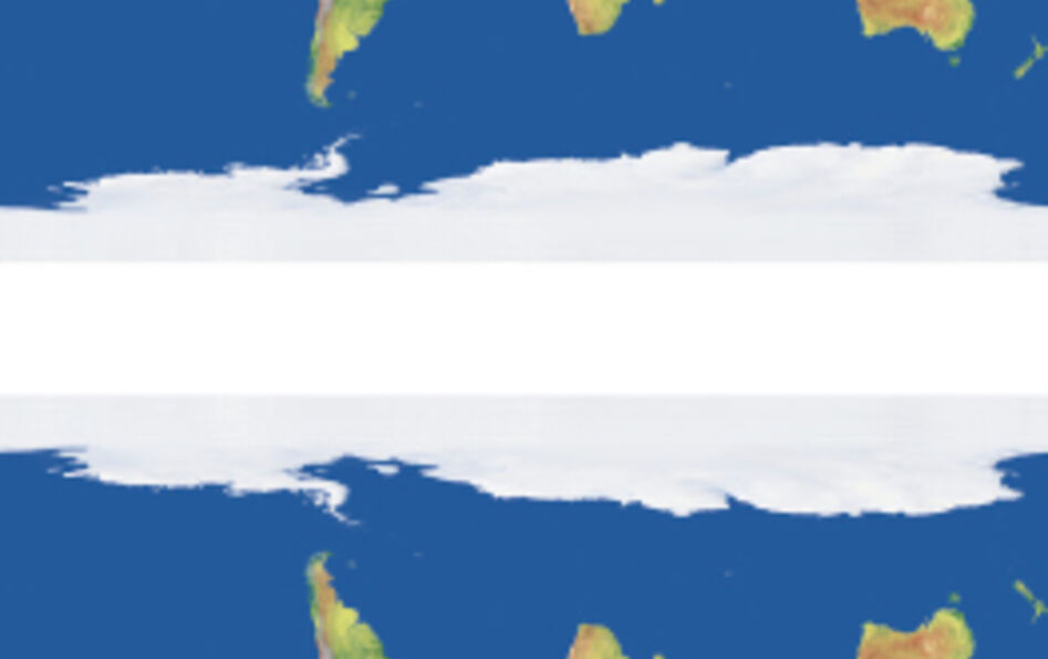 Facile, pensez-vous : celle du haut est à l’endroit et celle du bas est à l’envers. Mais à l’envers par rapport à quoi ? L’usage de placer le nord en haut des cartes est en effet arbitraire et remonte à l’astronome égyptien Ptolémée (90-168) ; si vous regardez la Terre depuis l’espace, il n’y a aucune raison de placer le nord vers le haut plutôt que vers le bas. Il s’agit donc là d’une convention que le philosophe américain David Lewis (1941-2001) a définie comme une solution à un problème de coordination : si vous tracez vos cartes le nord en haut et que je les trace le nord en bas, nous aurons des difficultés à nous coordonner (comme vous pouvez vous en rendre compte en essayant de retrouver les pays que vous connaissez sur la carte du bas !) ; problème qui n’apparaîtra pas si nous sélectionnons tous deux une orientation arbitraire commune. Mais cette convention peut avoir des conséquences déplaisantes : nous tendons à conférer une connotation positive au haut et négative au bas – penchant qui a d’ailleurs été mis en évidence par la psychologie expérimentale. C’est ce qui a motivé l’Australien Stuart McArthur à créer en 1979 sa carte du monde corrigée, en orientant le sud vers le haut – avec, bien sûr, l’Australie au centre !