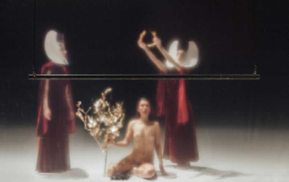 Fort d’une formation en philosophie, Romeo Castellucci n’a pas littéralement adapté l’essai de Tocqueville ; il en a plutôt tiré la moelle, le cœur idéologique, qu’il a traduit en tableaux visuellement frappants, comme à son habitude. Le plasticien, qui s’est déjà frotté à la Divine Comédie de Dante, dans un spectacle qui avait remué la Cour d’honneur du Palais des Papes à Avignon en 2008, a fait de l’image un langage à part entière, si bien que certain de ses spectacles sont quasiment muets. Ce n’est pas le cas de celui-ci qui, sans être bavard, laisse une grande part au jeu des comédiennes, excellentes. Elles donnent corps à ce désordre de sens, jouant sur des motifs entrés dans l’inconscient collectif, mêlant des considérations sur Dieu, la violence et le sacré, le mal… avec Tocqueville en filigrane.