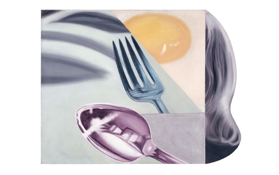 James Rosenquist, L’Atelier de Coenties Slip [Coenties Slip Studio], 1961, huile sur toile et panneau dur façonné,  86,4 x 109,2 cm. Paris, Galerie Thaddaeus Ropac © 2021, James Rosenquist Foundation/Licensed by Artists Rights Society (ARS), NY. Used by permission. All rights reserved. Photo © Christopher Burke