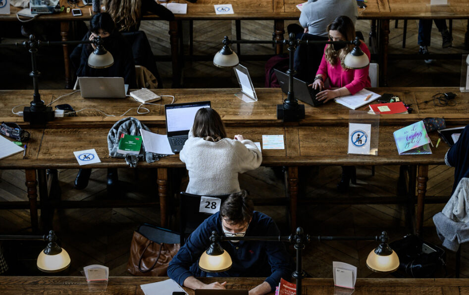 Des étudiants à la bibliothèque universitaire de Bordeaux, le 20 janvier 2021. © Philippe Lopez/AFP