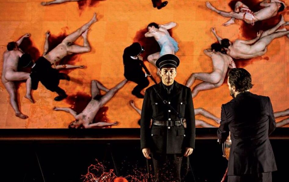 D’où vient l’attraction pour le mal ? En shakespearien habitué des drames historiques, Ivo Van Hove plonge dans ce gouffre métaphysique. Il adapte Les Damnés, d’après le scénario de Luchino Visconti, qu’il monte à la façon d’une tragédie classique sur fond de Seconde Guerre mondiale. Le metteur en scène flamand scrute ce moment précis du choix éthique, qui mène une famille d’industriels à mettre un pied dans l’abîme, puis à composer avec la compromission idéologique, avant de finalement nourrir une tragédie humaine. Il expose comment l’instrumentalisation de l’idéologie produit une lente dérive de ce choix, qui se résout finalement en une alternative à la Carl Schmitt (1888-1985) : amis/ennemis. Le philosophe allemand, théoricien du droit proche du national-socialisme, définit dans La Notion du politique (1932) l’inimitié comme condition de la politique : « La distinction spécifique du politique, à laquelle peuvent se ramener les actes et les mobiles politiques, c’est la discrimination de l’ami et de l’ennemi. » De fait, les membres de la dynastie Essenbeck agissent par calcul, sinon par conviction, depuis le patriarche, le baron Joachim (Didier Sandre), qui, d’un geste inaugural et par opportunisme, démet son directeur opposé au régime et choisit de se rapprocher des nazis afin d’assurer la prospérité de son entreprise après l’incendie du Reichstag. Il est assassiné dans la nuit par Friedrich Bruckmann (Guillaume Gallienne) épaulé par son amante Sophie von Essenbeck (Elsa Lepoivre). Tous deux fomentent un plan digne des Macbeth pour s’emparer du pouvoir. Les morts se succèdent ; sur scène, des cercueils sont alignés. Les Essenbeck y entrent en fanfare, comme intronisés aux limbes. De cette descente aux Enfers, Ivo Van Hove fait une fête macabre, se détachant du contexte historique pour ne conserver de cette tragédie que la trame. Le succès de ces Damnés tient à cet affranchissement vis-à-vis du maître et de l’histoire, autant qu’à la remarquable interprétation des acteurs de la Comédie-Française. Tous sont beaux dans l’effroi, notamment Christophe Montenez, dans le rôle de Martin von Essenbeck, redoutablement séduisant dans les affres. Le déroulement de la pièce tient à sa progression extraordinaire, à la cristallisation du mal autour de cet électron libre androgyne et travesti, devenu fer de lance des atrocités. À lui seul, il concentre le sentiment par ailleurs diffus que produit l’inconfortable fascination érotique pour l’horreur. Ivo Van Hove n’orchestre pas pour autant un spectacle voyeur. Il ménage plutôt une représentation de nos tréfonds obscurs où se mêlent les désirs et les peurs. Chacun est libre d’y projeter ses révulsions ou d’y affronter ses tentations.
