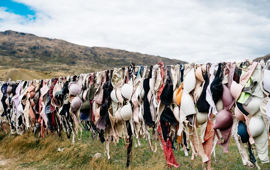 Clôture faite de soutiens-gorge, à Cardrona (Nouvelle-Zélande). © Pablo Heimplatz/Unsplash