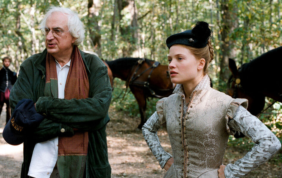 Bertrand Tavernier avec Mélanie Thierry sur le plateau de tournage de La Princesse de Montpensier, en 2010. © Étienne George/Collection ChristopheL via AFP