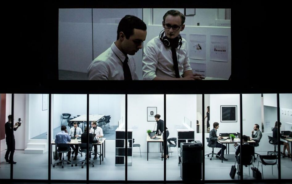 La performance filmique peut ainsi paradoxalement être comprise comme un procédé de retour au réel, surlignant l’absurdité du travail lorsqu’il a perdu de vue son utilité. Cet univers se prête d’autant mieux à l’expérience qu’il souffre précisément de ce recul de la tache concrète au risque d’un éloignement du sens et qu’il suscite les paradoxes. Car les employés de ces entreprises, embarqués dans des projets plus ou moins fumeux, invités contradictoirement à se réaliser en se dépersonalisant au profit de l’entreprise, sont aussi incités à devenir à la fois surveillant et surveillé, dans des open-spaces digne d’un panopticon, où chacun s'épie et est épié. En guise du quatrième mur fictif sur lequel repose habituellement l’illusion théâtrale, une large vite qui donne à l’open-space un air d’aquarium et à la caméra, dont les images sont projetées sur un grand écran surplombant, la vertu d’une loupe.