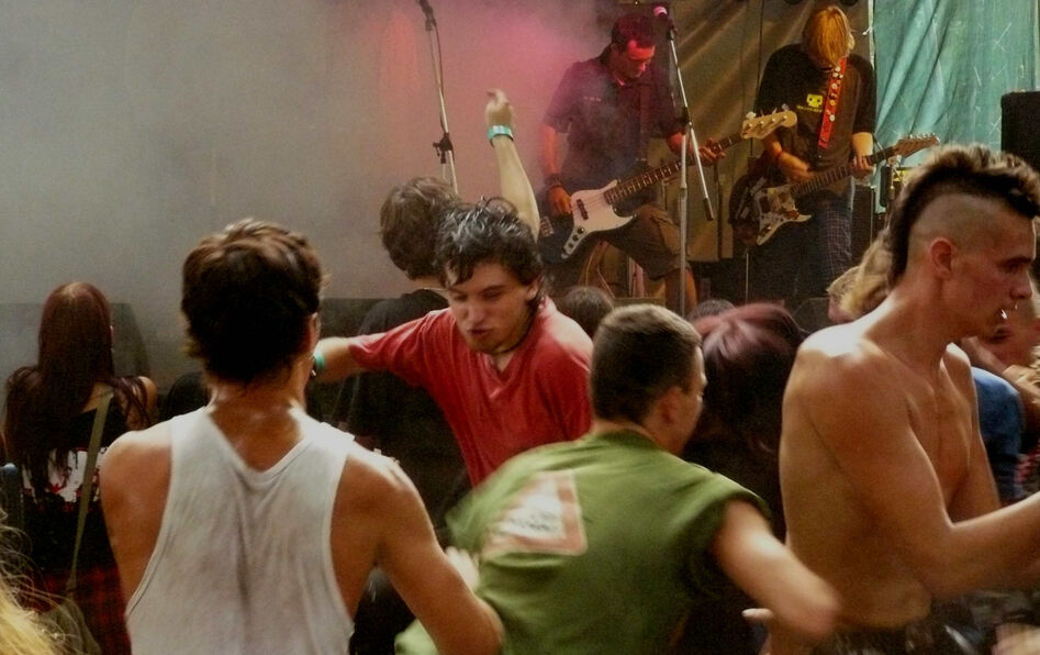À l’origine, en effet, cette danse désordonnée où l’on saute sur place (le nom vient du pogo stick, ce bâton sauteur né en Allemagne dans les années 1920) en s’entrechoquant les uns les autres est apparue à la fin des années 1970 dans des concerts de punk rock. La légende veut que ce soit Sid Vicious, le sulfureux bassiste des Sex Pistols, qui l’ait inventé. Comme le raconte le documentaire de Julien Temple L’Obscénité et la fureur. La Véritable histoire des Sex Pistols (2000), c’est en décembre 1975 à Londres, lors d’un concert du groupe dont il ne faisait pas encore partie, que John Simon Ritchie, le futur Sid Vicious, excité comme une puce, se mit à sauter sur place pour mieux voir la scène, et que ses voisins commencèrent à l’imiter. Ce geste inaugural fut peu à peu systématisé dans les concerts de punk, avec progressivement des variantes de plus en plus chaotiques et brutales comme le mosh, dans sa déclinaison hardcore puis metal, dans lequel les danseurs n’hésitent pas à s’adonner à des mouvements de bras et de jambes désordonnés en se poussant vigoureusement les uns les autres, éventuellement au sein de zones dédiées – le mosh pit ou circle pit, où ils peuvent aussi courir en cercle – ou en recréant des sortes d’arènes – les walls of death – dans lesquels les danseurs se séparent en deux clans distincts avant de se foncer dessus. L’histoire de cette barbarie apparente épouse donc celle du mouvement punk lui-même, conçu comme une réponse à la morosité d’une époque en proie aux chocs pétroliers, au chômage et à l’apparition du néolibéralisme, et entendant cultiver la spontanéité, l’animalité et l’excès. Des exigences qui se retrouvent tant dans la musique, le punk rock ultra-rapide et exempt de virtuosité, incarnant une volonté de retourner à la simplicité du rock primitif, que dans la philosophie qui le porte, empreinte de subversion et dirigée vers l’autogestion, comme l’a notamment établi le critique rock américain Greil Marcus dans son essai Lipstick Traces. Une histoire secrète du XXe siècle (1998).