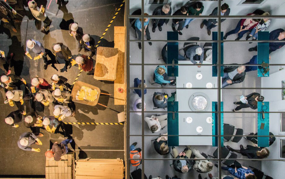 Avec le spectacle Société en chantier, le metteur Stefan Kaegi bâtit une œuvre qui donne à voir la complexité du monde à travers le regard de toutes les personnes impliquées dans l'édification d'un bâtiment.
