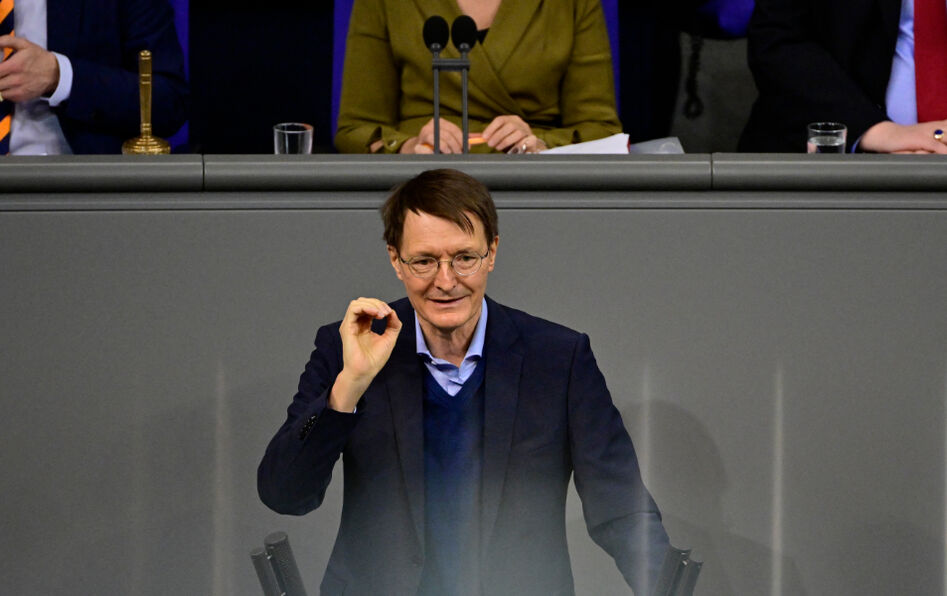 Le ministre allemand de la Santé Karl Lauterbach devant le Bundestag, à Berlin, le 26 janvier 2022, pour évoquer l'état de la vaccination contre le Covid-19. © John MacDougall/AFP