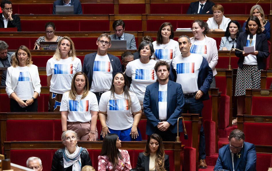 La député a été immédiatement interrompue par la présidente, Yaël Braun-Pivet, qui a dit à son adresse : « Vous savez que vous n’avez pas à manifester par votre tenue vestimentaire ou une quelconque tenue, c’est contraire à l’Instruction générale du Bureau ! » Sas a répondu : « Notre attitude est respectueuse. Notre question est simple : quand allez-vous doter la France d’une grande loi de programmation de la transition écologique ? » Puis son micro a été coupé. Il ne fait pas bon entrer en T-shirt à message au temple de la représentation nationale.