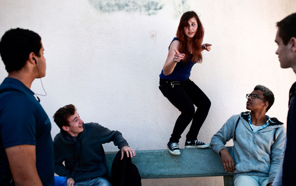 Pendant la récréation, au lycée professionnel des métiers du bâtiment Alfred-Sauvy, à Villelongue-dels-Monts (Pyrénées-Orientales), qui applique des méthodes originales d’enseignement. © Patrice Terraz / Divergence images
