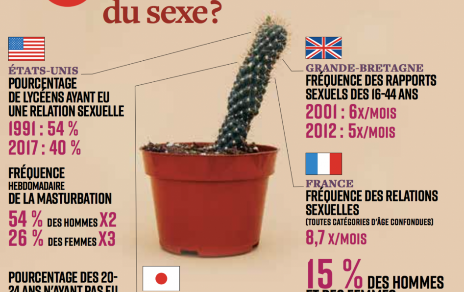 Il n’a jamais été aussi facile d’avoir des rapports sexuels : les applications de rencontre permettent de nouer des relations occasionnelles et concluantes, la culture pornographique se déverse sur Internet en déniaisant de plus en plus tôt les adolescents, les relations sans engagement se multiplient, l’homosexualité est reconnue, les pratiques jadis taboues, du sexe anal au BDSM, se généralisent… À l’âge du libre accès, tout est ainsi en place pour qu’il y ait plus de sexe. Et pourtant, une série d’études parues aux États-Unis montrent le contraire, particulièrement chez les jeunes. Deux enquêtes publiées dans les Archives of Sexual Behaviour montrent que l’inactivité sexuelle chez les jeunes adultes de 20 à 24 ans - les Millennials – a doublé par rapport à leurs aînés, nés dans les années 1970. Fort de ces éléments, le journal The Atlantic émet l’hypothèse d’une récession sexuelle. Parmi les causes du phénomène : les jeunes vivent de plus en plus tard chez leurs parents (30 % des - de 35 ans) et se mettent en couple moins souvent et plus tard (60 % des - de 35 ans vivent sans partenaire) ; la culture pornographique rend la masturbation devant les écrans moins « coûteuse » socialement, mais elle transmet des schémas sexuels parfois dégradants ; l’effet de mouvements comme #Metoo inhiberait les usages de la séduction. Enfin, les applications de rencontre, chronophages et peu « concluantes », ne bénéficieraient qu’aux mieux lotis physiquement tout en privant l’espace de la drague de son ambivalence. À suivre The Atlantic, la tendance serait observable en Grande-Bretagne, en Australie et au Japon…