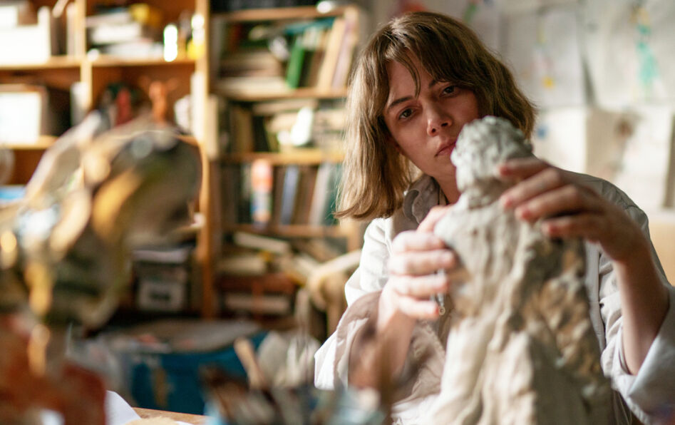 Lizzie ne vit pas de son art, elle est contrainte d’exercer des travaux de secrétariat dans la petite école d’art de sa ville. La réalisatrice nous emmène au cœur de l’Oregon, au nord-ouest des États-Unis, et nous présente un milieu universitaire où les étudiants dansent en cercle, rythmés par des sons de flûtes et de tambourins. Pourtant, à travers les sculptures de Lizzie, figurines de femmes mélancoliques en céramique, se dévoile une réflexion plus large sur la création et les perversions du monde de l’art contemporain. Si le statut à part de l’artiste et de ses créations, évoqué notamment dans les œuvres de Hannah Arendt, trouve ici confirmation, le milieu n’échappe pas aux logiques mercantiles les plus concurrentielles.