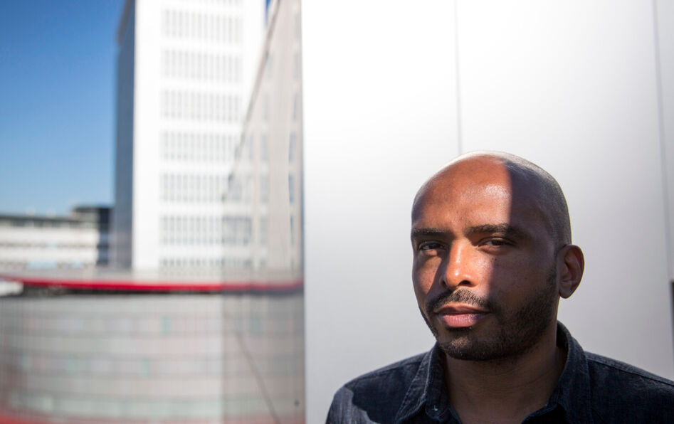 Ali Rebeihi, qui anime l'émission “Grand bien vous fasse” sur France Inter, pose sur le toit de la Maison de la Radio à Paris, le mercredi 7 septembre 2016. © Jean-Claude Coutausse/Divergence
