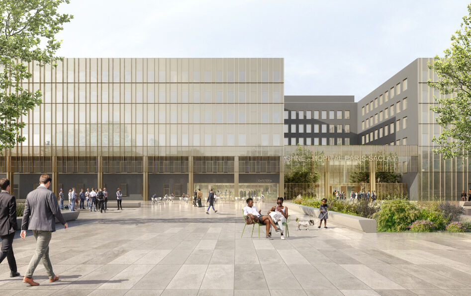 Éric de Thoisy : On peut aussi aller plus loin dans la réflexion : historiquement, les hôpitaux sont construits en-dehors des villes, parce qu’on cherche à éloigner les malades des bien-portants… Ils naissent donc en périphérie, quasiment comme des lieux de relégation. Et puis, le tissu urbain se retisse autour d’eux, et la jonction finit par se faire. Mais justement : est-ce qu’on ne pourrait pas faire entrer davantage la ville dans l’hôpital ? C’est ce que nous avons essayé de faire dans notre projet hospitalier pour le plateau de Saclay…