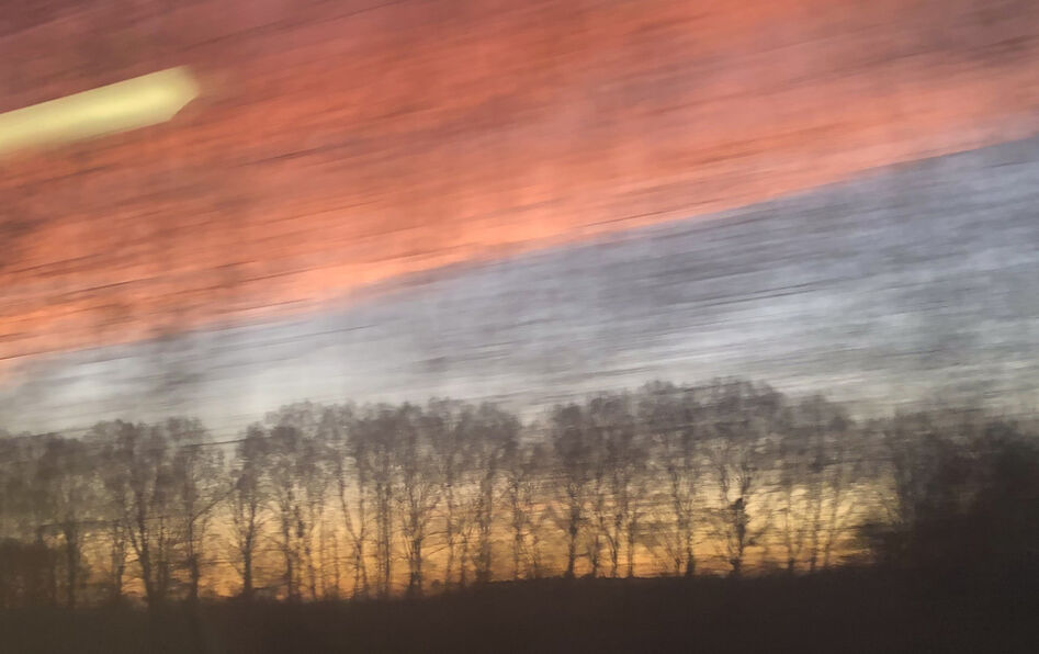 « Pour en venir à mon TER, j’ai constaté qu’il n’y avait personne, absolument personne en France. J’ai vu des collines, des rivières qui scintillaient au soleil déclinant, des arbres verts, jaunes et rouges, des champs, des bâtiments, des ruminants, quelques carrosseries de voitures en mouvement – aucune figure humaine. Dans le train, certes, il y avait foule, et même pas mal de gens debout. Dans les gares, j’ai observé des cohues paniquées. Mais dès que la rame repartait, je replongeais dans la contemplation du paysage désert. Aucune explication fantasmatique à ce fait : une explosion nucléaire (je ne sais pas pourquoi mais j’y pense plus souvent ces derniers temps) n’aurait pas épargné les ruminants ; pas d’exil, à ma connaissance, de mes compatriotes vers la Belgique ou l’Italie ; et je crois savoir que nous sommes sortis du confinement. Je me suis seulement laissé guider par ma perception. J’ai traversé une portion de territoire qui ondulait, puis s’aplatissait, qui s’assombrissait avant de plonger dans l’obscurité, qui se fardait avant de s’endormir, dans un dernier élan d’hommage à la beauté du monde. Les constructions n’étaient plus que des cubes dispersés ou assemblés par fantaisie. Les formes géométriques des champs, des routes, des pylônes, n’évoquaient plus aucun projet grandiose, mais exhibaient innocemment leur rigoureuse perfection. Et puis avouez, c’est très reposant de quitter pour quelques heures le monde bavard et anxieux de nos semblables. Il suffit de s’asseoir près de la vitre et de tourner la tête.