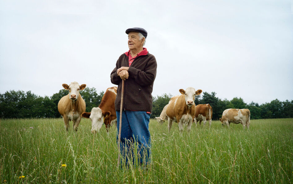 À 87 ans, Louis Raynaldy se porte comme un charme. Il cultive son jardin, conduit sa voiture et s’inquiète du chaos boursier. Mais lorsqu’il se met à raconter son existence, c’est comme s’il ressuscitait un passé presque légendaire. Il est né dans cette maison construite par son père. Ses ascendants étaient également d’ici et paysans. La tradition familiale voulait que le fils aîné devienne ecclésiastique et que le second reprenne l’exploitation. Ainsi Louis Raynaldy, comme son père, a eu un frère religieux. Quant à lui, il n’avait pas de vocation précise. « J’ai fait un peu de collège, raconte-t-il. La guerre a éclaté, le collège a été fermé et je suis revenu à la maison. Mes parents m’ont dit : “tu nous aideras”, et ça s’est passé comme ça. » Son enfance ? « Un peu de joie », résume-t-il. Les travaux et les jours : « On faisait des veillées, on fabriquait des paniers avec du bois de châtaignier, on apprenait à faire du cidre, on ramassait les champignons, on épluchait les châtaignes, on coupait les coulées de betterave… ensuite on allait manger une fouace [la brioche de la région]. On était plus en contact avec les autres que maintenant. » L’exploitation, dans cette zone montagneuse au sol ingrat, était modeste : six vaches, une paire de bœufs pour travailler, un peu de blé pour le pain et de seigle pour nourrir les cochons… Les parents de Louis Raynaldy « étaient pauvres, mais ils étaient heureux ». Ils vivaient presque en autarcie, n’achetant que le sucre et le café. « Mais ils aimaient les réunions familiales, les foires de la région où l’on rencontre toutes les générations », se rappelle leur fils.