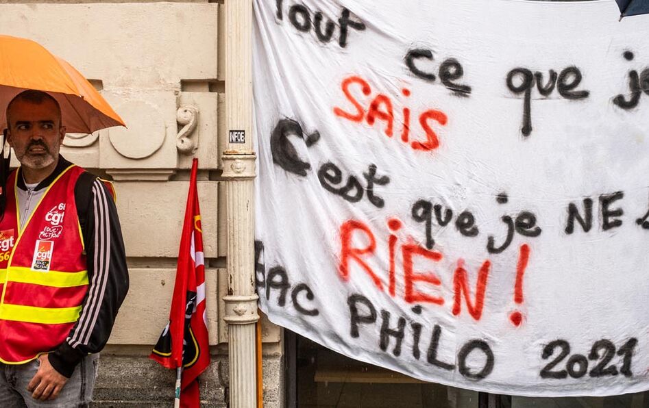 L’épreuve de philosophie – seule épreuve écrite à se tenir, cette année, en « présentiel » – est au cœur de vives polémiques. Pour certains enseignants, la correction numérique imposée des copies « dénature le travail du professeur ». Pour d’autres, le fait que la note obtenue lors de l’examen soit prise en compte seulement si elle est supérieure à celle du contrôle continu vide l’épreuve de son sens et de son intérêt. C’est l’opinion de la jeune philosophe et enseignante Audrey Jougla : « Plus de risque, plus d’angoisse, plus de baptême du feu », « en retirant la difficulté, on soustrait aussi le mérite, et par là même, la fierté d’avoir vaincu ».
