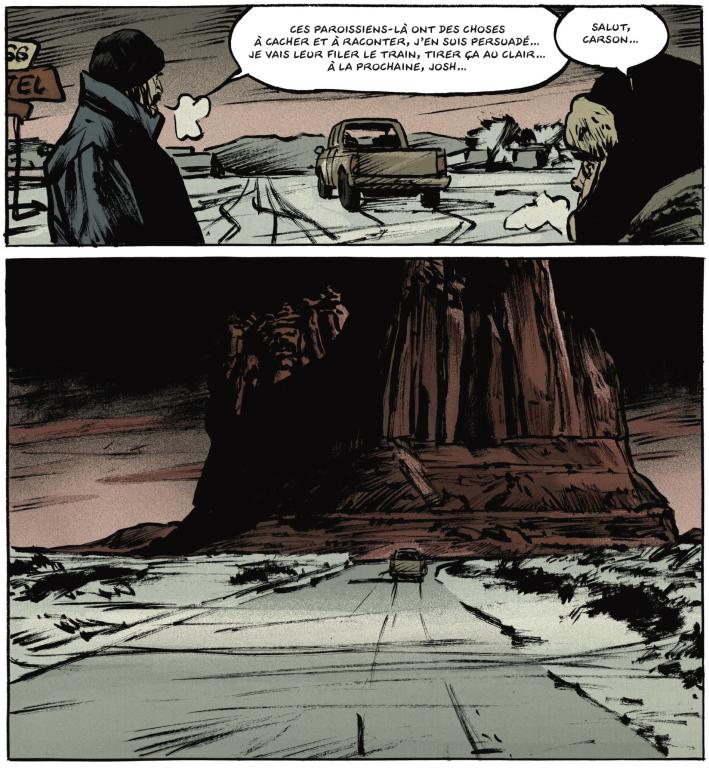 Le 3 juin dernier est paru Extinctions 2, un album qui relate une séquence intermédiaire de cette épopée, la progressive destruction de la planète par le froid. On y voit le train sillonner le globe – par des ponts suspendus – de New Delhi à l’Arizona, et les derniers humains se livrer une concurrence cauchemardesque pour y monter.
